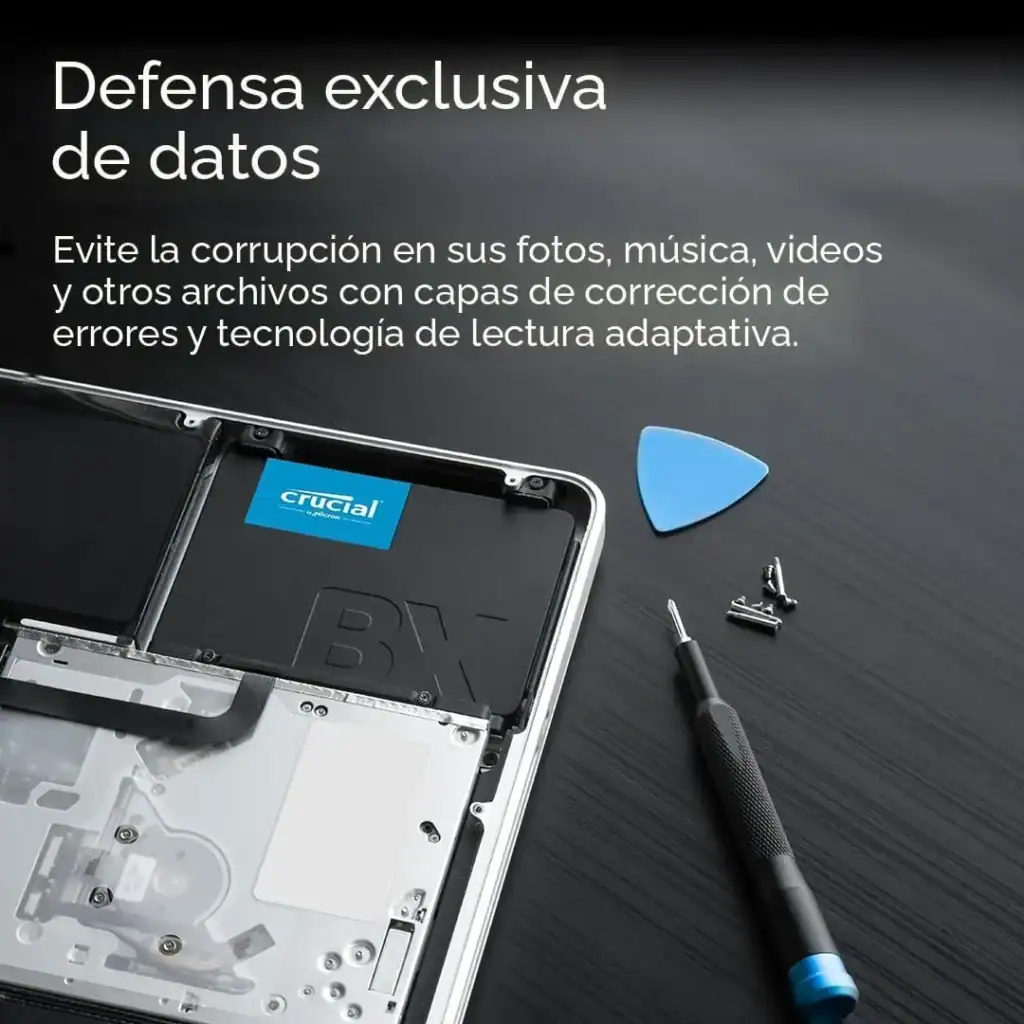 Una de las características destacadas del Crucial BX500 es su diseño de 2.5 pulgadas, lo que facilita su instalación en espacios reducidos dentro de la mayoría de los dispositivos. Esta unidad también está optimizada para ser energéticamente eficiente, lo que no solo contribuye al ahorro de electricidad, sino que también ayuda a prolongar la vida útil de la batería en laptops.